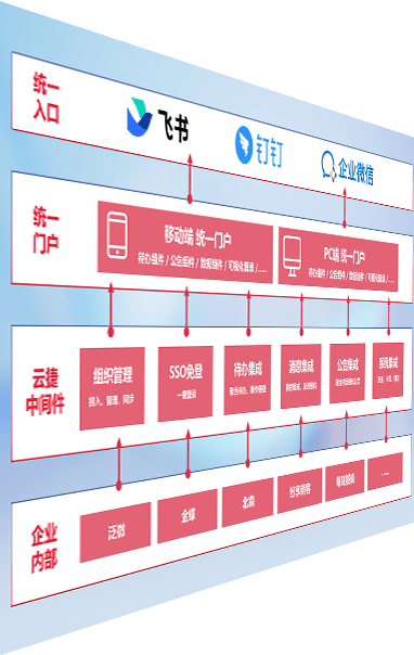对协作平台提供支持服务,,,,支持企业应用与协作平台对接,,,包含组织同步、、、消息集成、、待办集成等。。支持目前主流的协作平台:钉钉、、企微和飞书。。